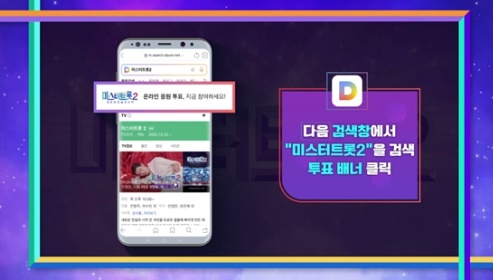 ④ 아래와 같이 "보라색 미스터트롯2 투표하기" 배너를 클릭합니다.